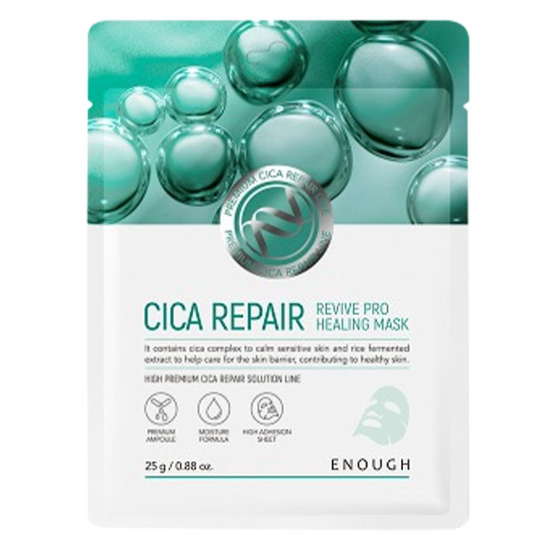 ENOUGH Cica Repair Revive Pro Healing Mask (1 vnt.) – tai intensyviai atkurianti lakštinė veido kaukė, skirta sudirgusiai, jautriai ir pažeistai odai nuraminti bei sustiprinti.