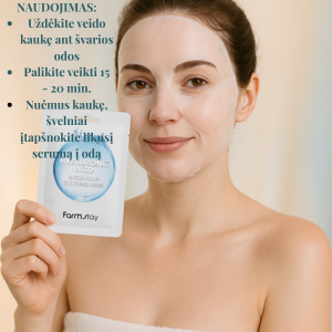 Lakštinė veido kaukė FarmStay Hyaluronic Acid Super Aqua Soothing Mask – tai SOS pagalba pavargusiai, išsausėjusiai ar jautriai odai.