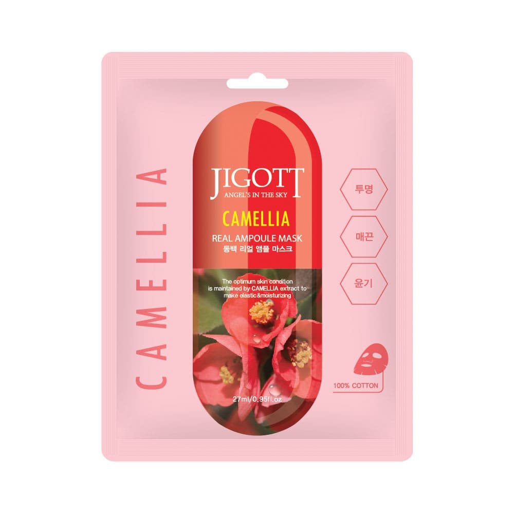 Jigott Camellia Real Ampoule Mask – prabangios sudėties lakštinė veido kaukė, sukurta odos jaunystei, skaistumui ir elastingumui palaikyti. Pagrindinis veiklusis ingredientas – kamelijų ekstraktas, turtingas natūraliais antioksidantais ir vitaminais (A, E, C, B grupė, Q10), kurie apsaugo odą nuo žalingo aplinkos poveikio ir sulėtina senėjimo procesus.